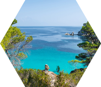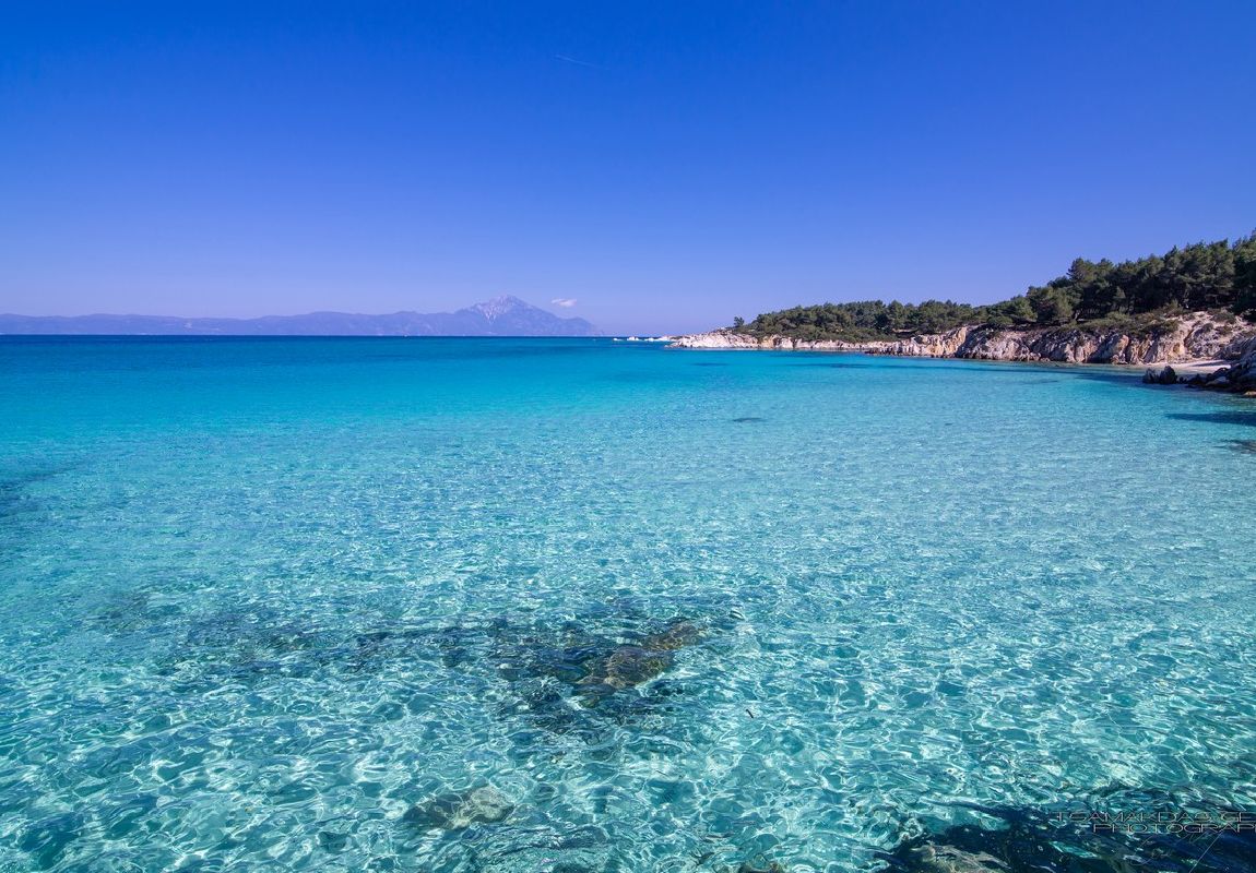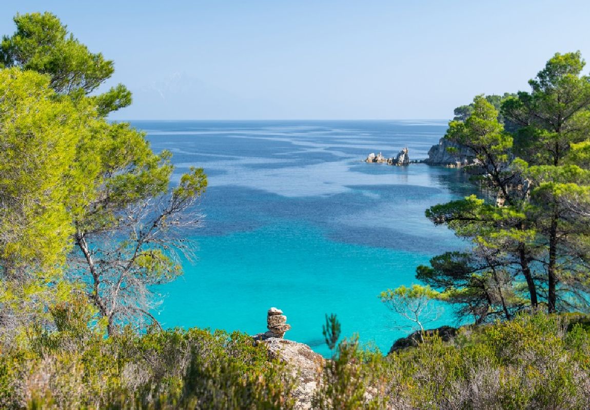 Kavourotripes (or Orange beach) are small coves, hidden behind a pine forest, with small white sandy beaches and crystal clear turquoise waters. White rocks and thick pine trees touching the sea. This landscape of exotic beauty creates a small paradise on earth.